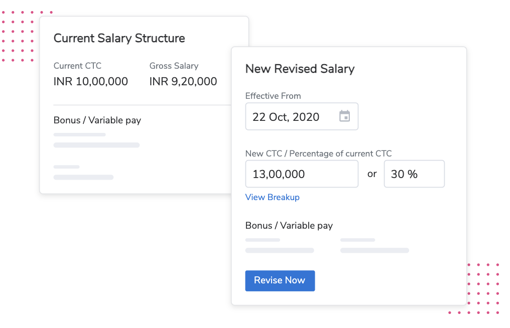 Keka brought in a design revolution in the online payroll management system market and has shown how easy entire payroll process can be made and yet completely configurable. The range based salary structure simplifies the automation process for any size of the organization.