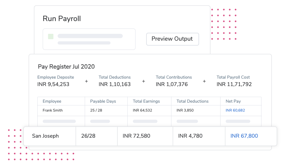 You can run a preview of the payroll period any number of times and review every aspect of the payroll before finalizing. The intuitive interface in Keka online payroll software allows you to easily compare changes from the previous pay period and identify changes at a micro-level.