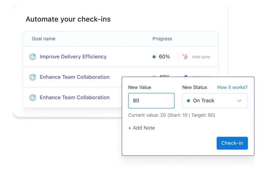 Avoid manually data-entry data and source your goal data from tools like HubSpot, Salesforce, and Google Suite. Download